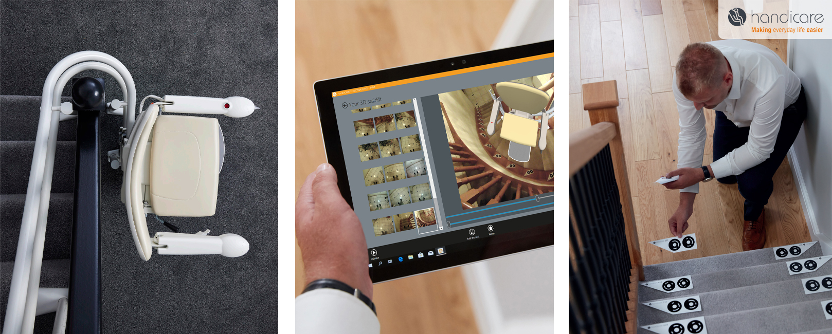 Handicare has developed an advanced digital staircase measurement system, PhotoSurvey 4D. This ensures 100% accurate dimensions of your stairs, hallway and landing are taken quickly during a no-obligation home survey, so you can rest assured your new stairlift will fit perfectly.Our approved Partners all use PhotoSurvey 4D, which can take as little as 10 minutes!