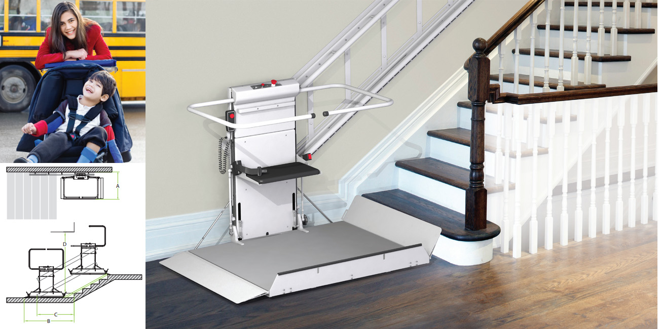 The Savaria Delta inclined platform lift provides wheelchair access over straight stairs as it travels along a modular guide rail system. When not in use, the unit folds compactly to the wall, leaving access to the stairs. The Delta lift is a popular choice for churches, schools and homes with minimal construction needed for installation.